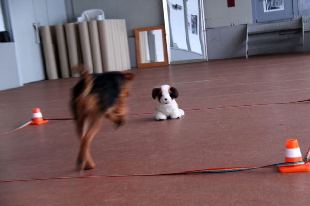 - Für das Rennen in die Box kann man mit dem Target trainieren, oder mit einem Spielzeug.