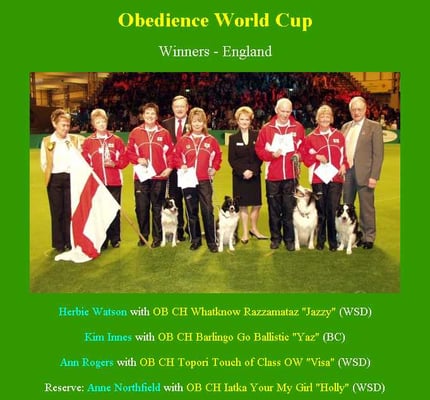Im 2005 konnte ich auf Einladung des Organisators des UK Obedience World Cups mit dem Schweizerteam von Nicole Nicollier an der Crufts teilnehmen.
