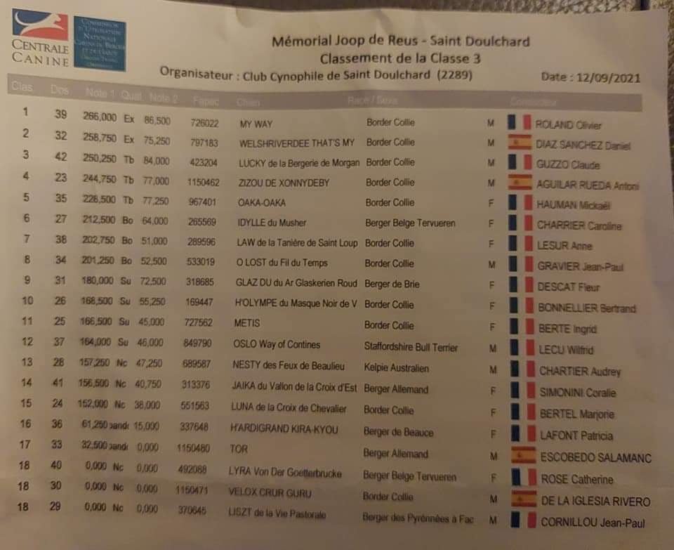 Der Joop de Reus Cup 2021 wurde vom 11./12. Sept. 2021 in Frankreich im Club Cynophile de Saint Doulchard durchgeführt.
