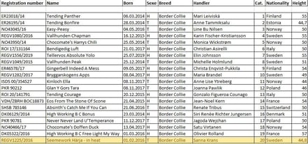 Es starten folgende Hunderassen an dieser WM, angemeldet 111 Hunde, gestartet 110: